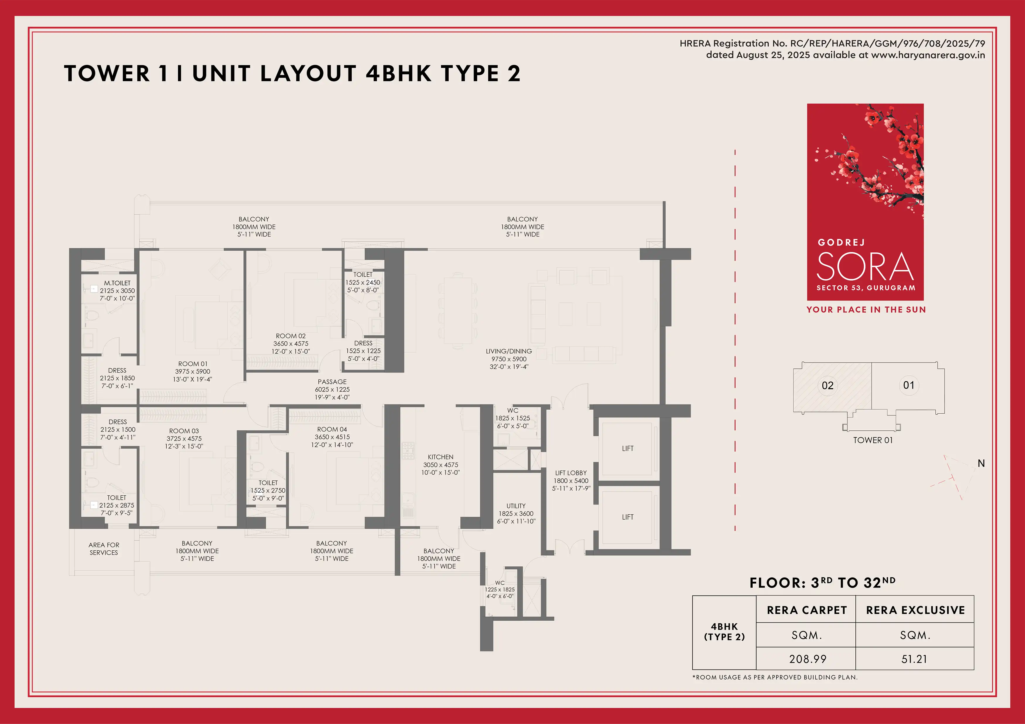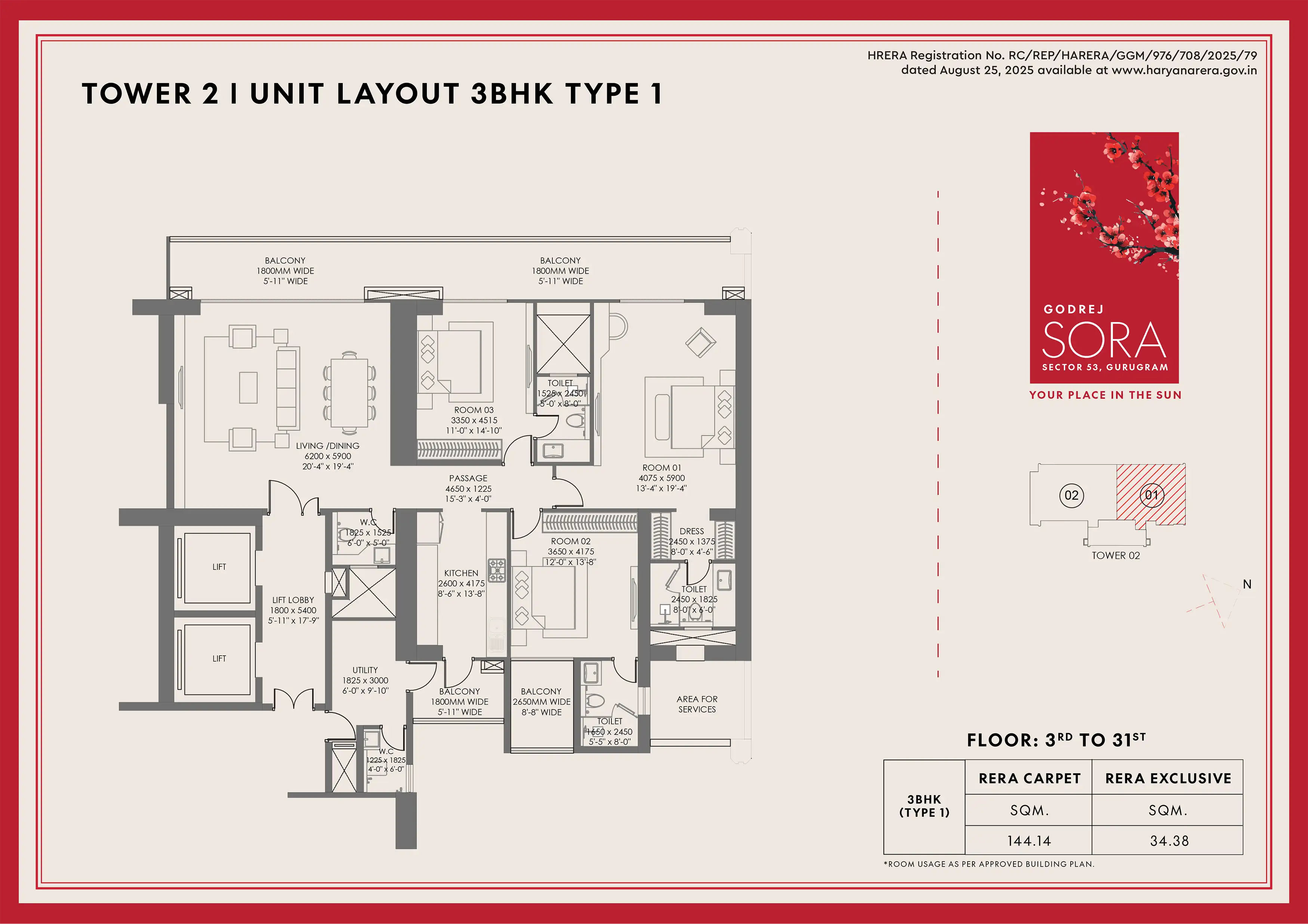 Situated in a highly reputed region, i.e. Sector-53, Golf Course Road, Godrej Sora is a superlative development which will further share affiliation with a stadium, lush-green reserves, massive biodiversity park, and many popular landmarks. DLF Cyber City, Sushant Lok, Ambience Mall, Leela Hotel, Golf Course Extension Road, Southern Peripheral Road, Indira Gandhi International Airport, and many more such exquisite destinations share affiliation with Godrej Sora.